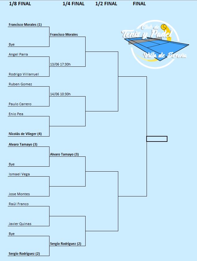El/la jugador/a que no se presente a su partido pasados 15 minutos de la hora fijada quedará eliminado.